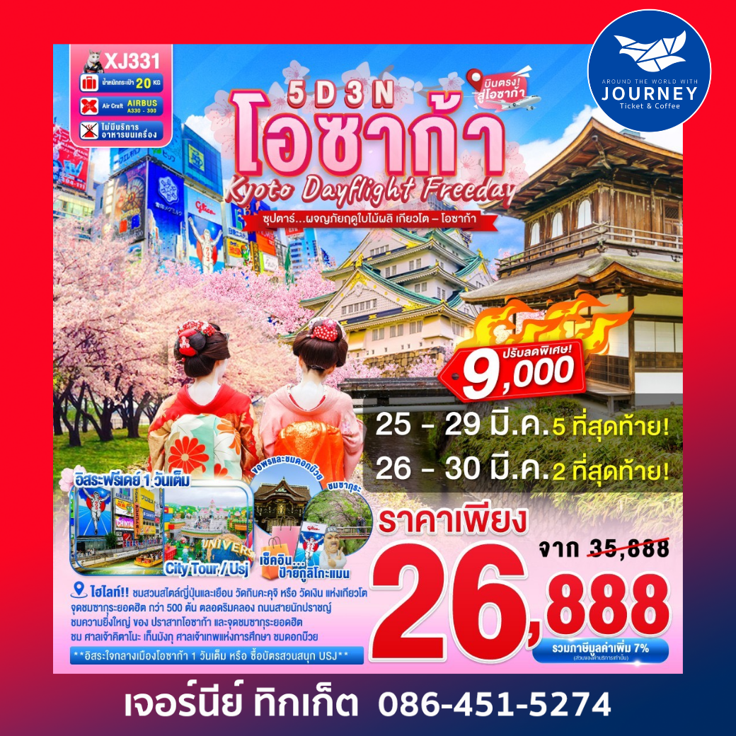 "ซุปตาร์... ผจญภัยฤดูใบไม้ผลิ เกียวโต–โอซาก้า" DAYFLIGHT OSAKA KYOTO FREEDAY SPRING 5D 3N